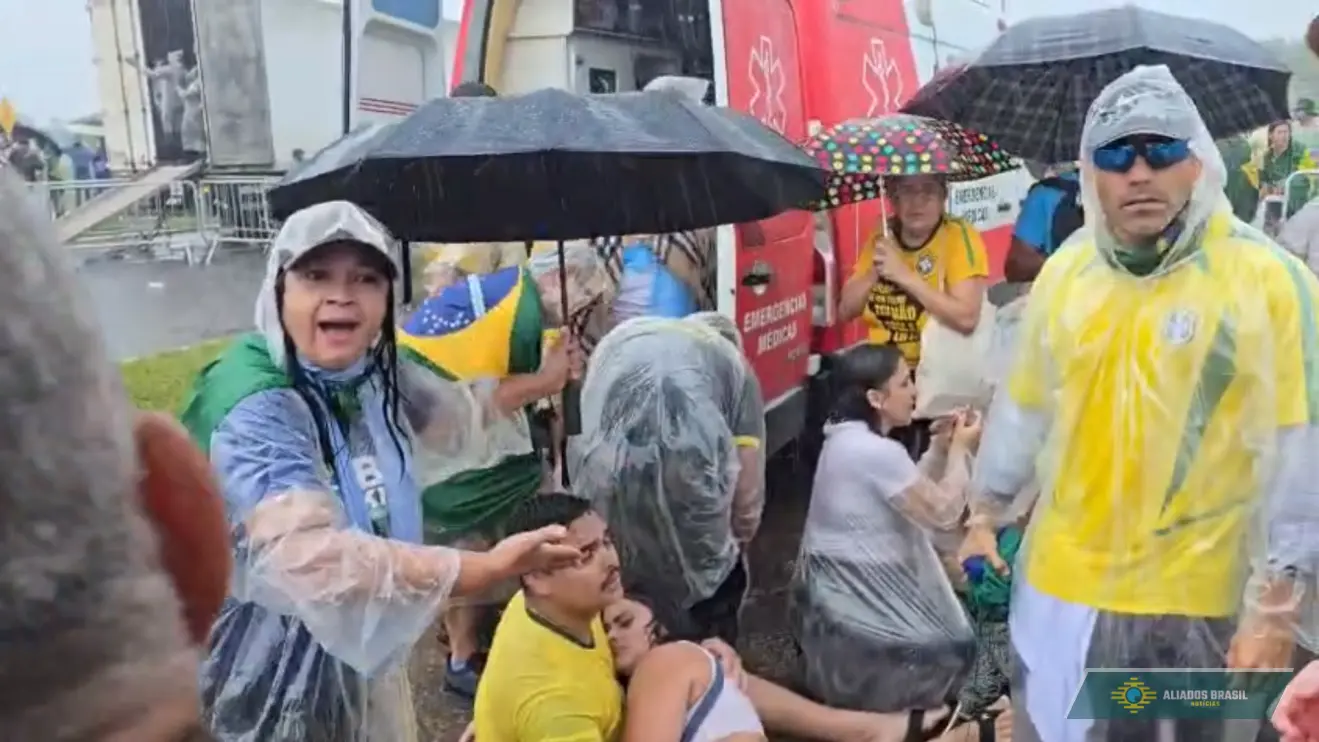Natalia, de 29 anos, informou que ela e a amiga são de Cuiabá (MT) e chegaram para o evento na sexta-feira (23). A mulher disse que durante o ato desta tarde (25), uma forte chuva tomou conta do ambiente, o que fez com que as colegas ficassem agarradas. Veja abaixo os relatos: